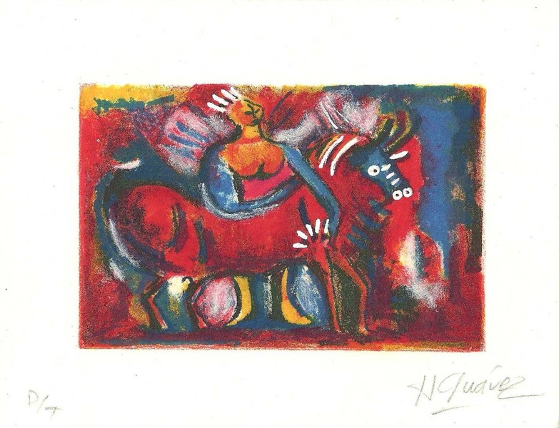 Simón Cruz. "Jinete". Grabado, 2004. Dimensiones 104x85.5 cm.
