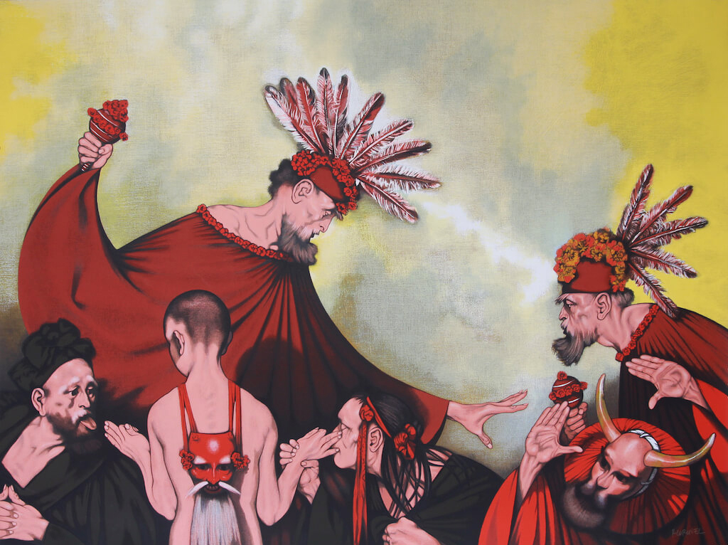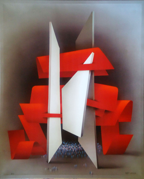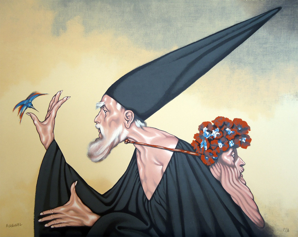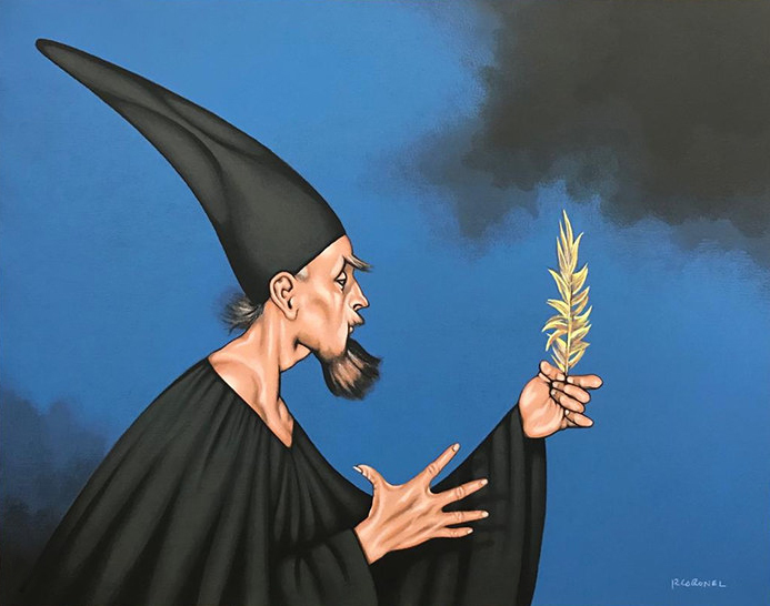 Rubén Leyva. La mano santa. Acrilografía, 81x101 cm.