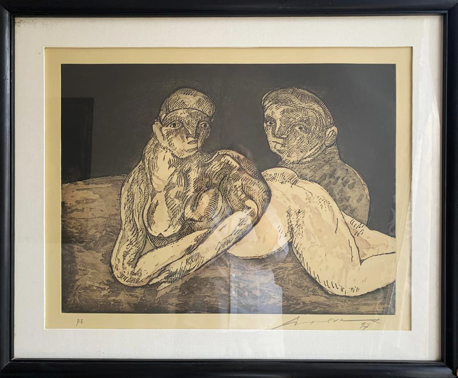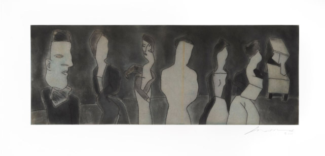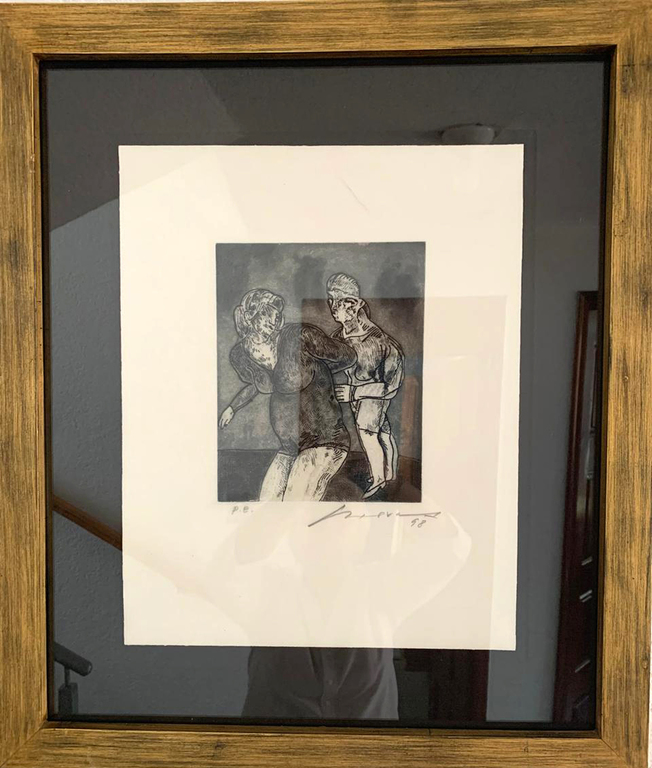 Benjamín Domínguez. Danzantes. Grabado técnica punta seca, 59x45 cm.