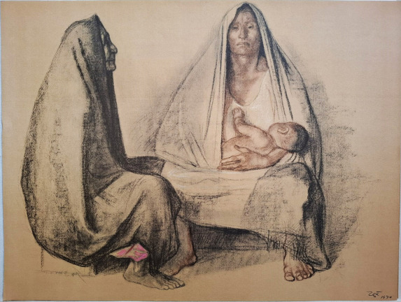 "Mujeres con niño", 1974. Lito offset, 48x63 cm