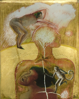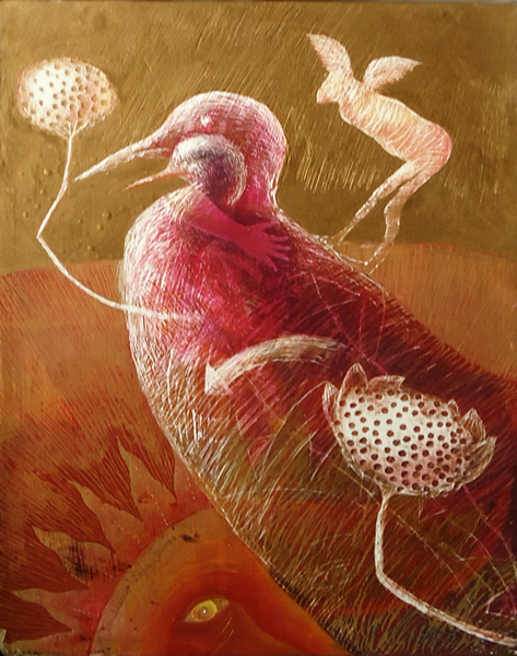 Emiliano López Javier un gran artista, que nació en Valle Nacional, Oaxaca, en 1959. Es un ejemplo del que me valgo cuando intento explicar cómo es de esos genios cuya imaginación y sentido del humor no tienen límites. De su trayectoria es importante comentar que antes de ingresar en el Taller de Artes Plásticas Rufino Tamayo, desde 1980, comenzaron sus exposiciones. Participó en el XIV Concurso Nacional de Artes Plásticas de Aguascalientes y en la Galería Tierra Adentro (INBA). Su obra ha sido promovida en destacados espacios como lo son la Galería Uno en Puerto Vallarta, la Galería La Mano Mágica en Oaxaca, el Museo Carrillo Gil en la Ciudad de México y otros más en Estados Unidos donde ha mostrado sus personajes y animales, los que sitúa en su “realismo mágico" particular. Ahora, el maestro nos honra con su presencia en Art Nova y esperamos que a Usted le agraden sus cuadros. Será posible coincidir en que Emiliano es un artista que tiene algo qué decir, tiene historias para contar. Las siguientes imágenes forman parte de una serie en formato chico. Si se mira bien, el artista demuestra su dominio en uno de los más finos y difíciles oficios, el óleo sobre hoja de oro, sobre lienzo, montado en tabla.
