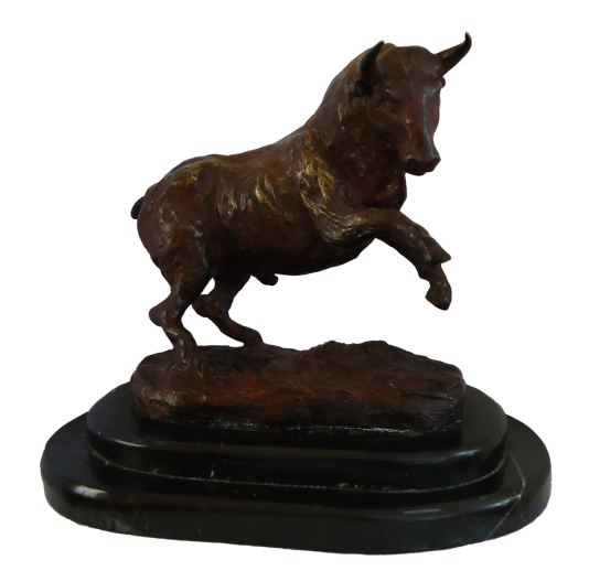 "Toro en reparo". Bronce patinado, 20x20x10 cm