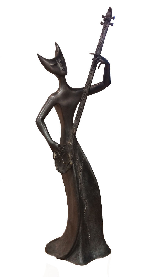 "La bandolinista". Bronce patinado, 125x47x48 cm