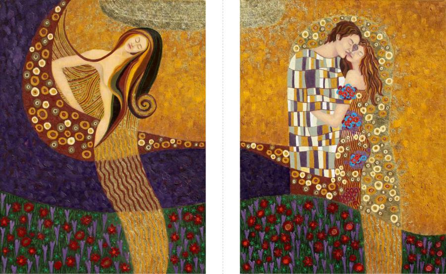 Homenaje a Klimt. Oléo sobre lienzo, 90x140 cm (díptico)